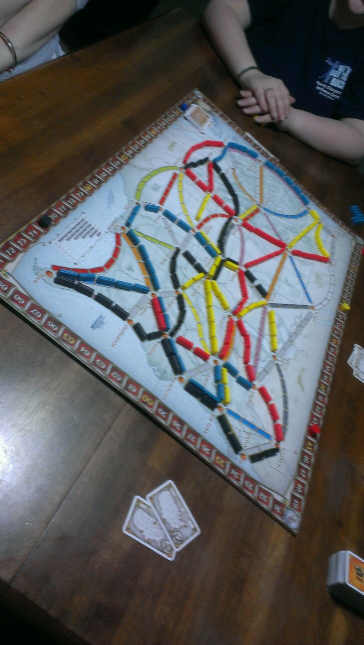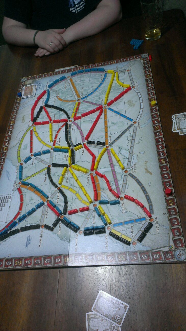 So once I got off work I walked into the middle of 7 Wonders. But once that was over, we started the night off with Ticket to Ride.