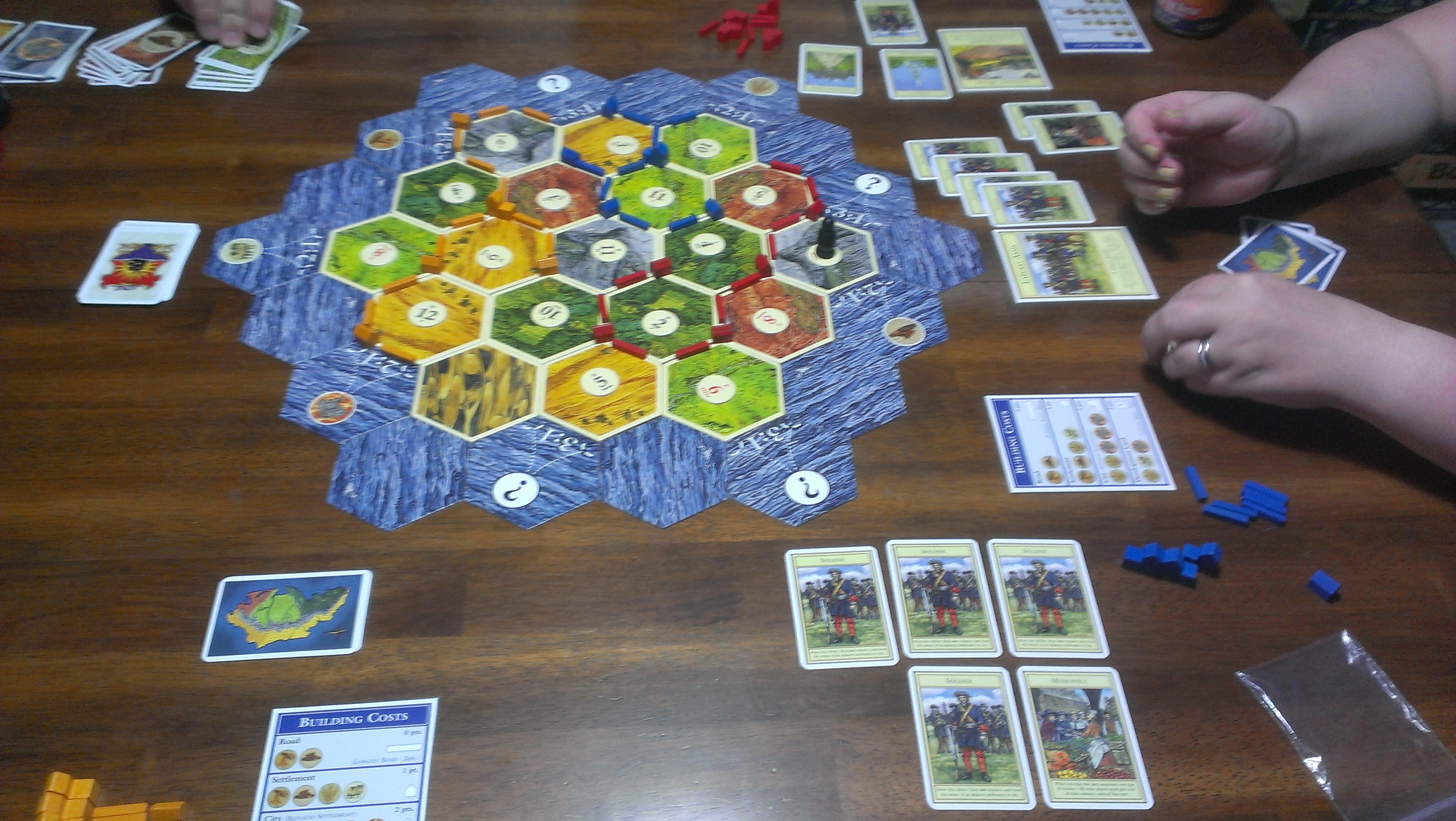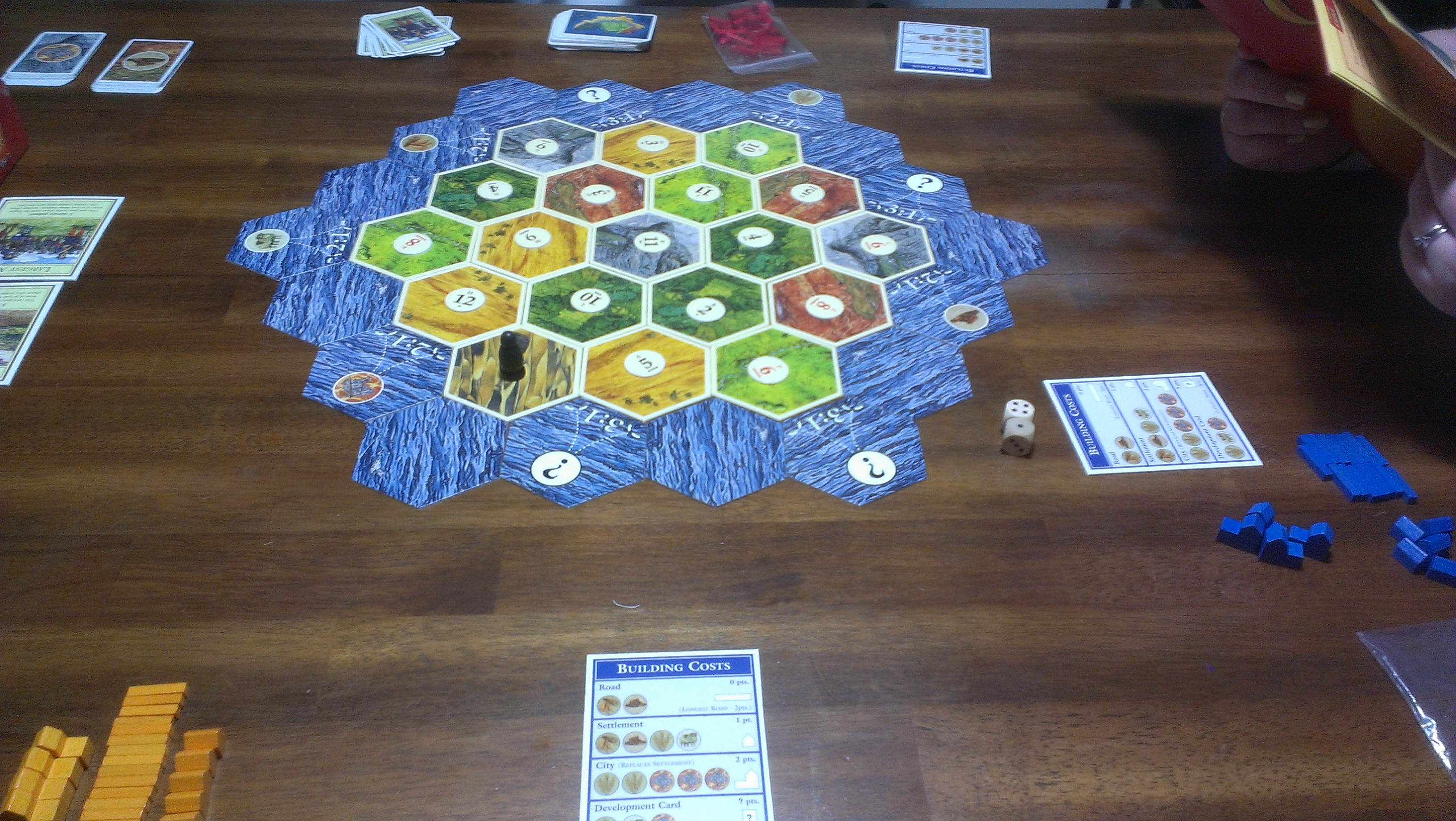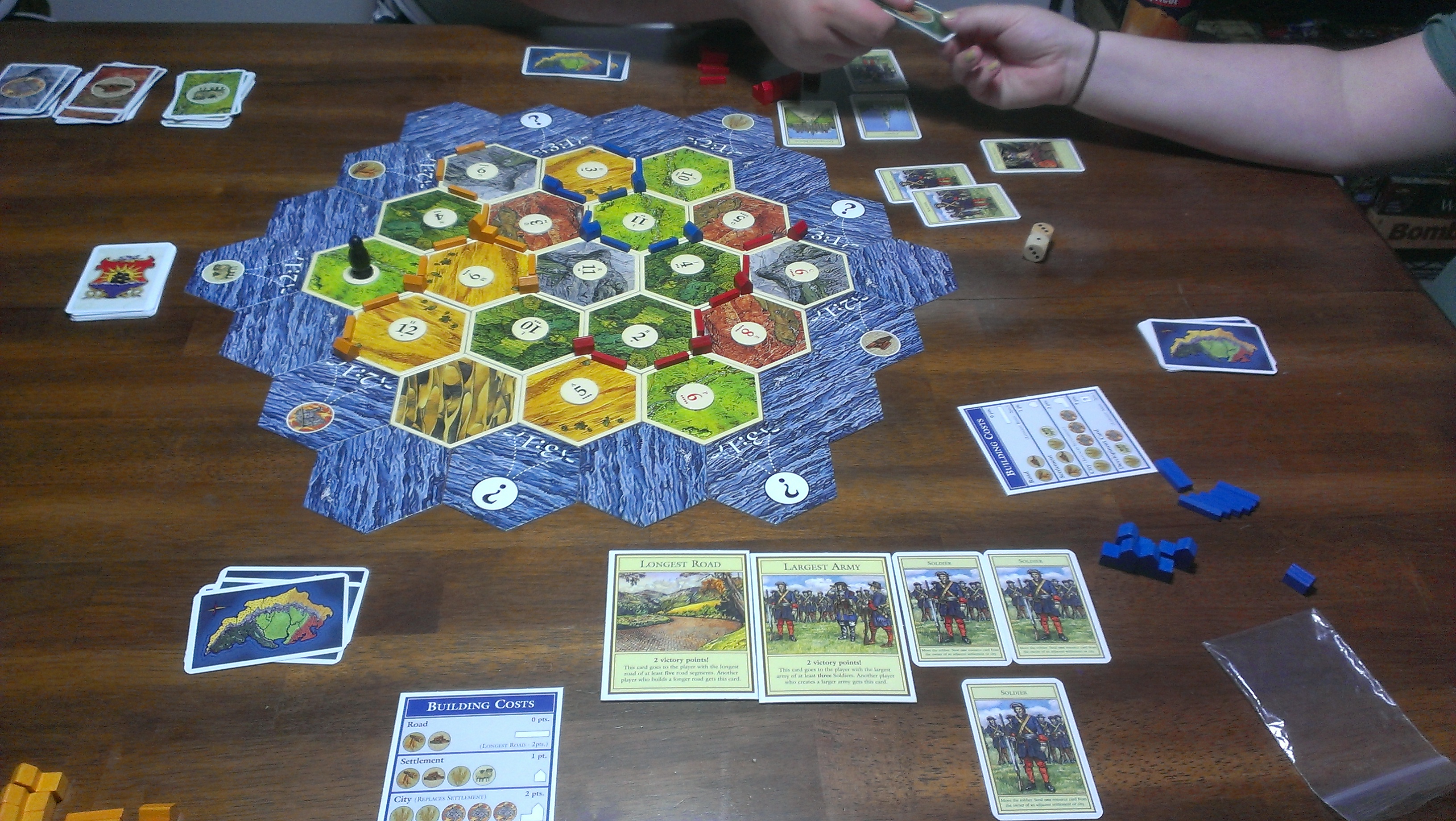 Next is the ever classic Settlers of Catan! I love this game, how can you not like this game. I HAVE WOOD FOR SHEEP!! Yes that the only time in someone’s life where it’s okay to say that HAHA. I almost had the game, I have the longest road and largest army. Only 2 points away from winning, I had it all taken away. Just didn’t have the Stone or Brink to build…. My gaming buddy (we’ll call him Care Bear for the time being.) Also had a horrible defeat, as you can see in the pictures below HAHA! In Settlers of Catan, players try to be the dominant force on the island of Catan by building settlements, cities, and roads. Each turn dice are rolled to determine what resources the island produces. Players collect these resources to build up their civilizations to get to 10 victory points and win the game.