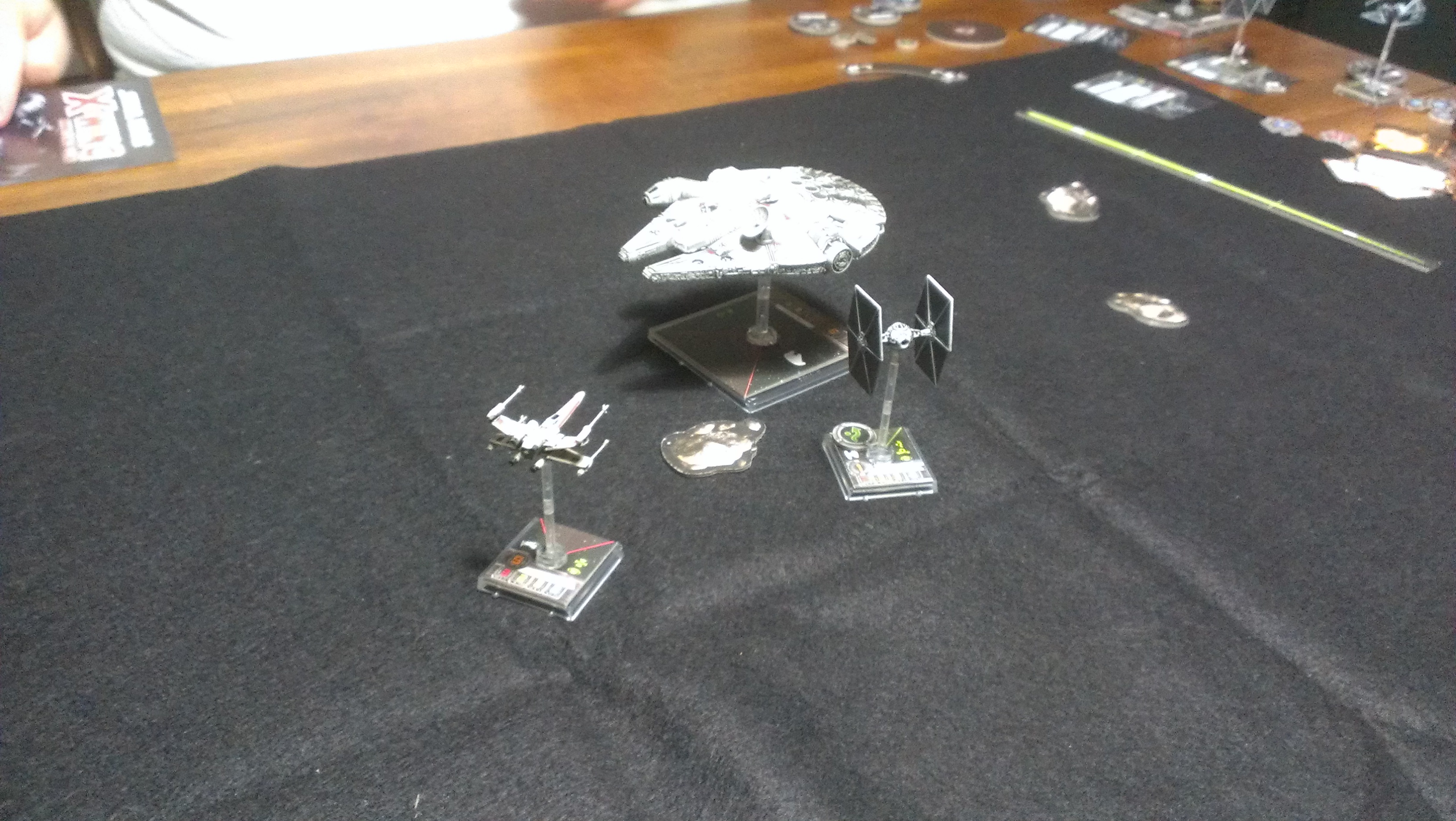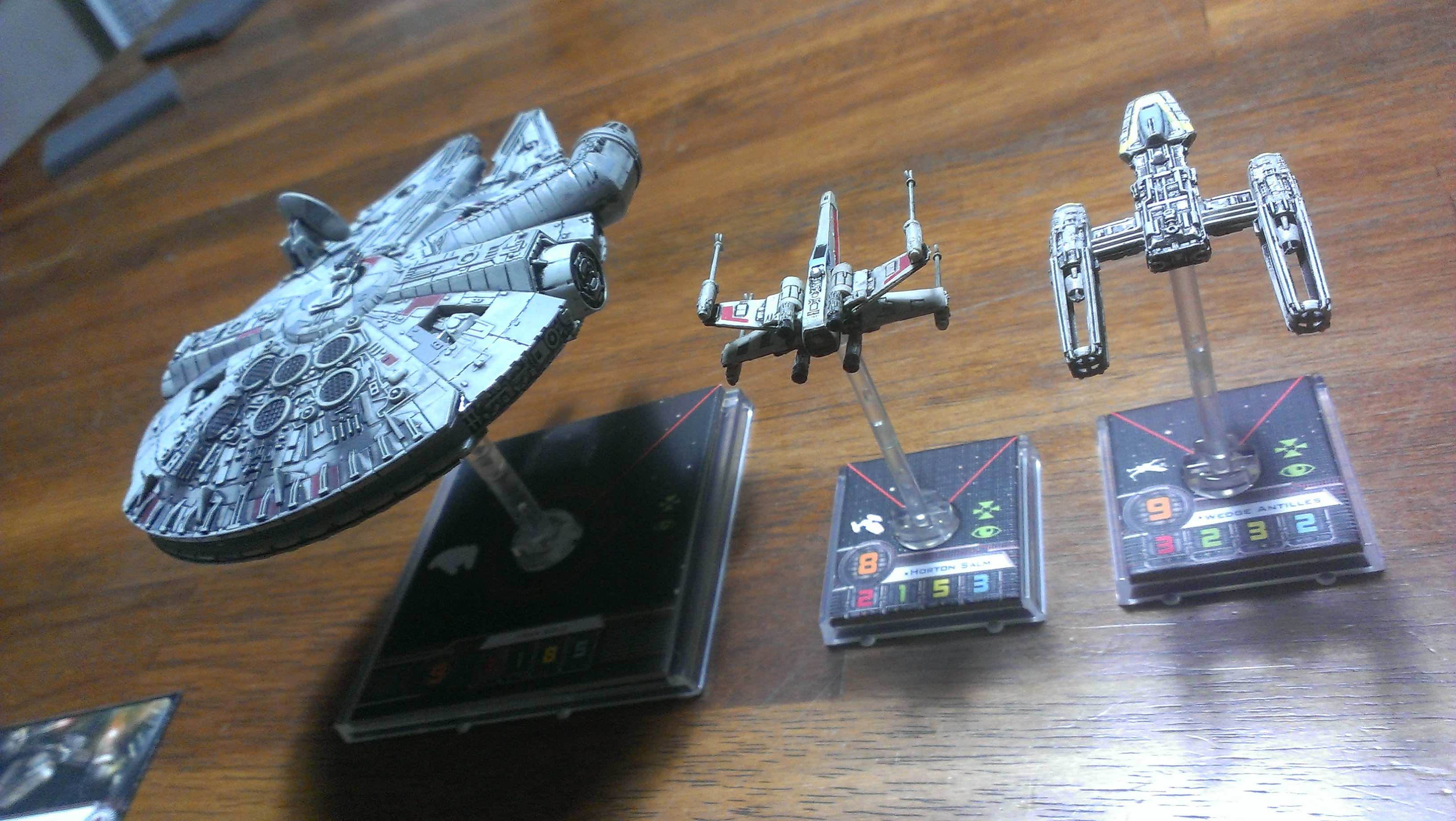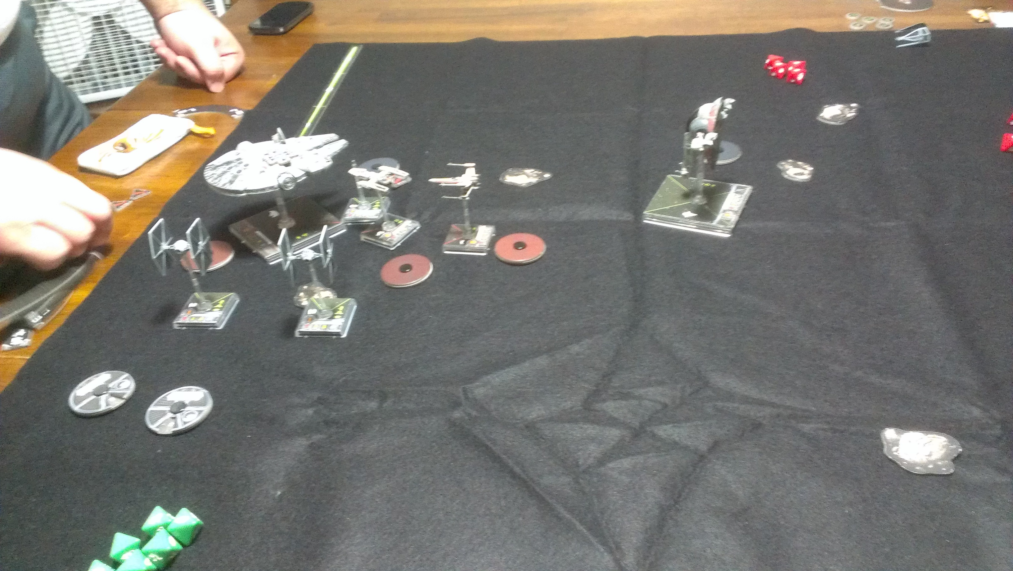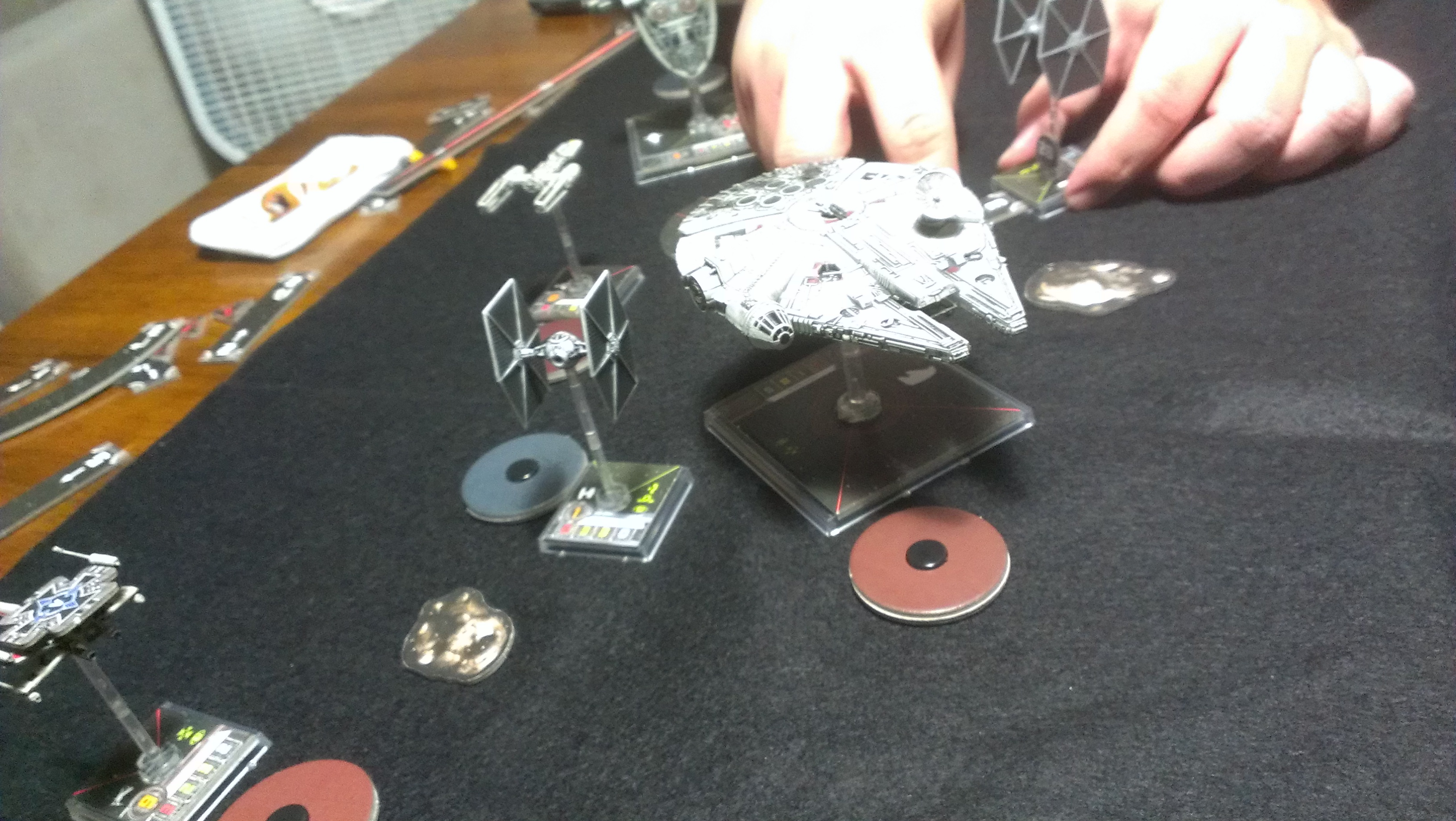 To end the night we played Star Wars: X-Wing Miniatures. I had never play this before and I must say it was AWESOME! We just dove right into it, I played the light side and “Care Bear” was the dark side. I found myself losing all of my shields and my Y-Wing. “Care Bear” lost all of his ships, well one ran away off the board haha (oops). Game description from the publisher: “Tactical ship-to-ship combat game in which players take control of powerful Rebel X-wings and nimble Imperial TIE fighters, facing them against each other in fast-paced space combat. Featuring stunningly detailed and painted miniatures, the X-Wing Miniatures Game recreates exciting Star Wars space combat throughout its several included scenarios. Select your crew, plan your maneuvers, and complete your mission!