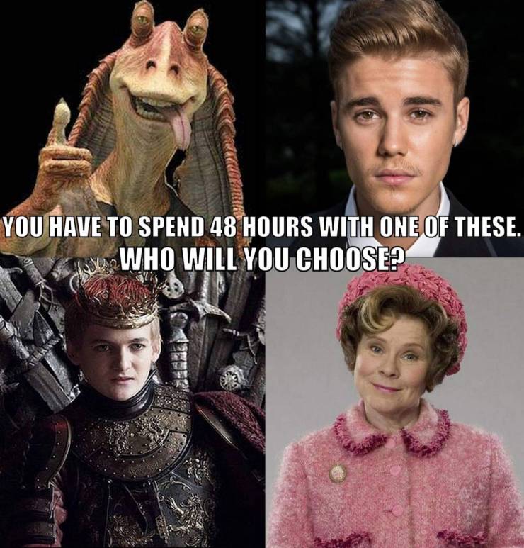 Which one would you choose? I’d have to say Justin. Why you ask? The kid as got money and could make the 48 hours pass by fast.