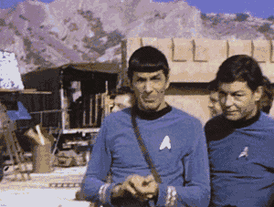 A candid moment on set with Leonard Nimoy & DeForest Kelley. (Via)