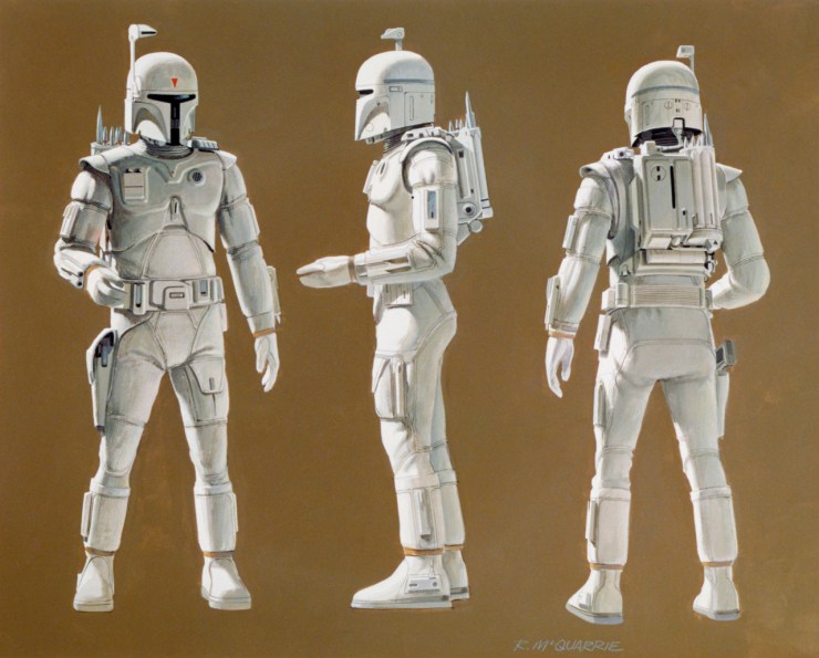 Early Boba Fett concepts depicted the legendary bounty hunter in white armor. Learn more at starwars.com.