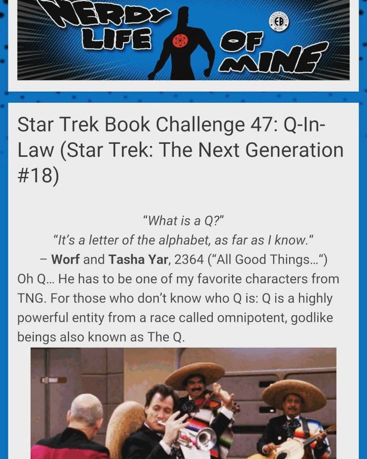 A new #StarTrek reading 📖 #Challenge is up! It’s Q! The book was half bad.. Come check it out www.nerdylifeofmine.com
