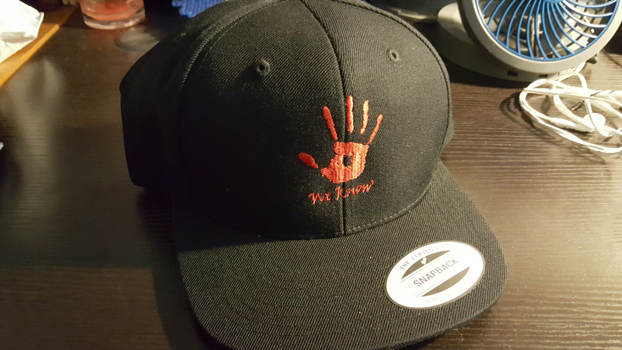 So awhile ago I had placed an order for two hats, that were on a flash sale. Skyrim theme hats in fact :). They had embroidered red hand print and below it said “we know”. Skyrim being one of my favorite games of all time and can’t wait for the Xbox One edition to come out. This was a no brainer on buying two.