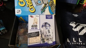The Loot box makes me laugh. Every LootCrate box can be turn into something else and/or re gifted to someone else. This month was a mock cereal box hahaha, called “Cog Crispies, For Silicon-Based Constructs”. Now for Star Wars!! We have a build your own R2-D2 figure that is made out of wood. I’ll have to post some pictures of R2 once I’m done building it. So that is this months crate!! Hope you enjoyed the spoilers!!