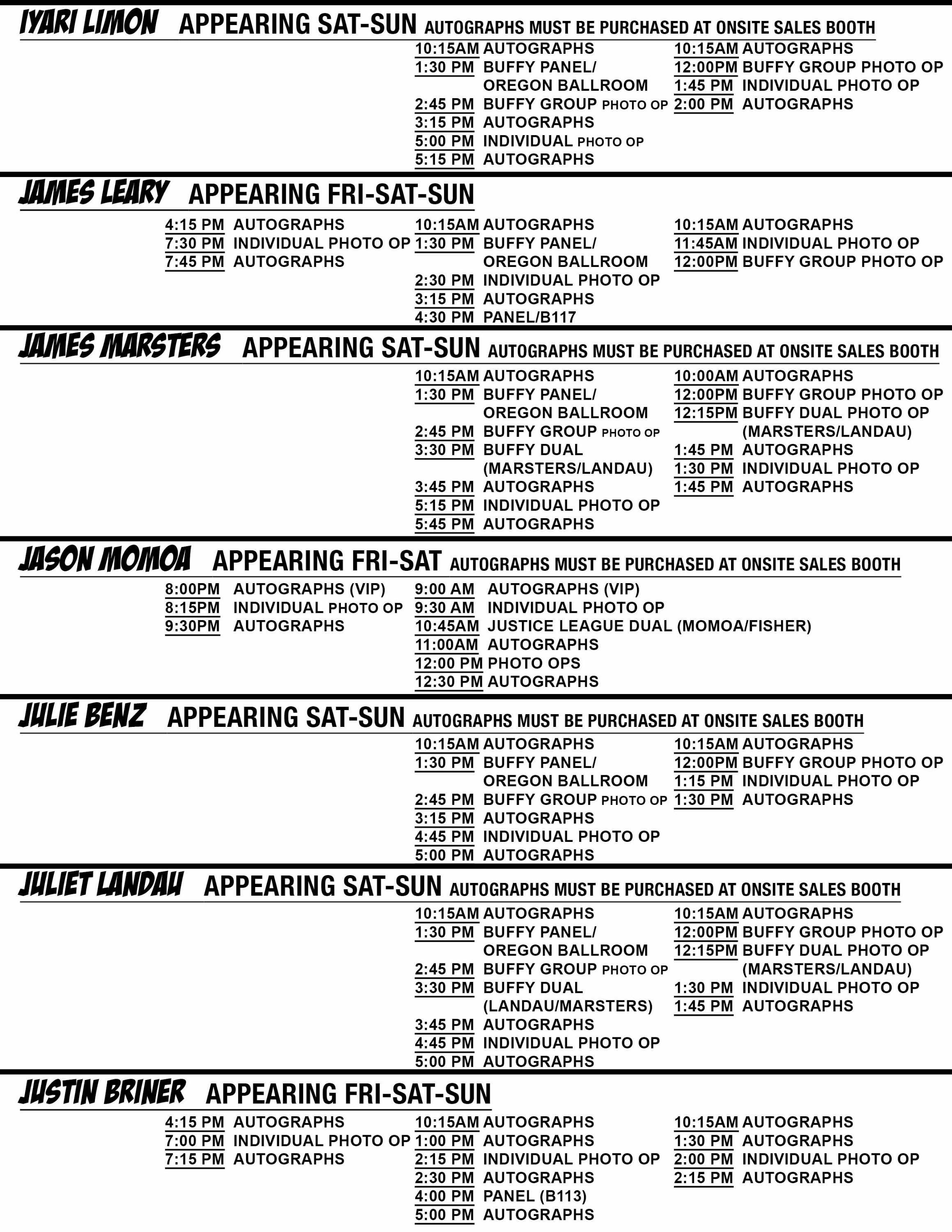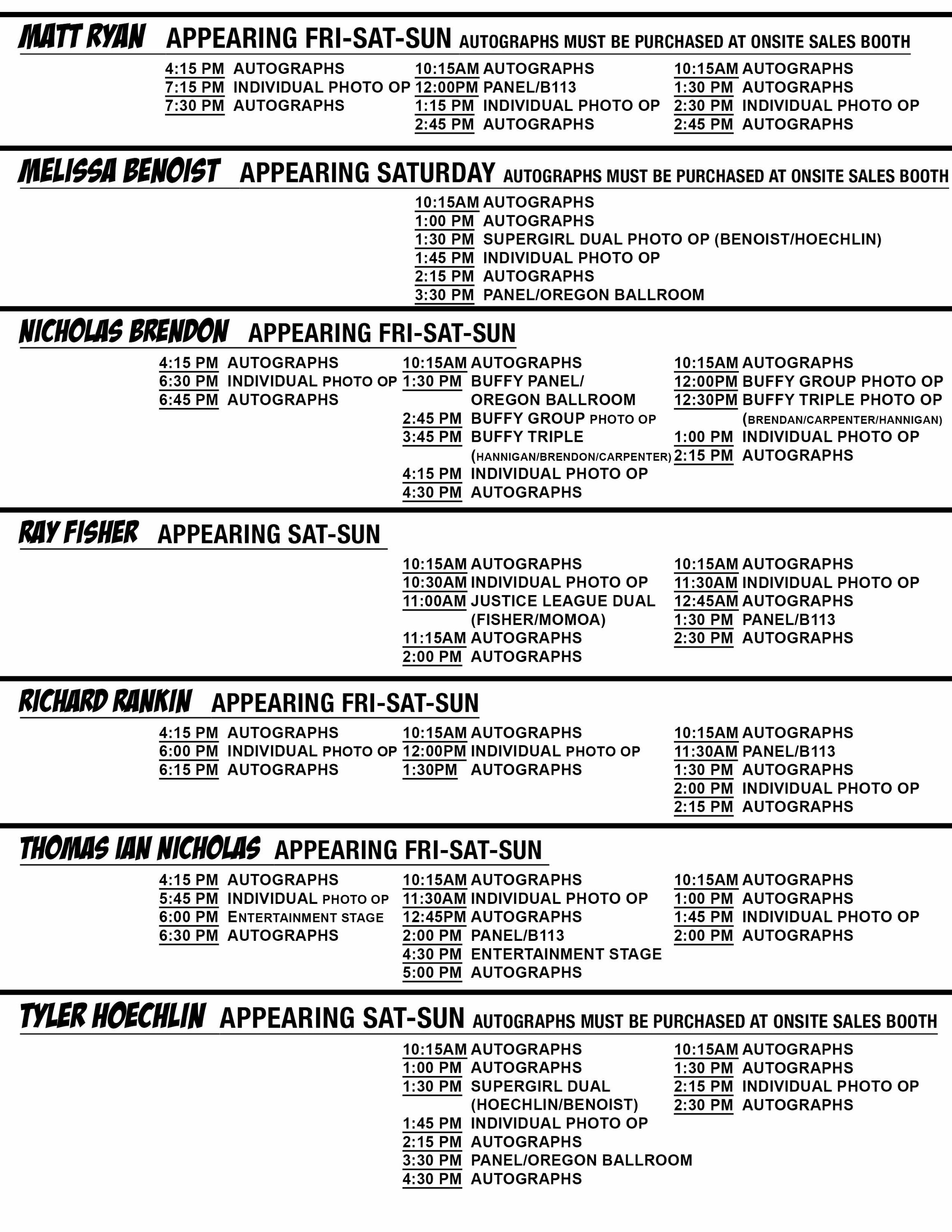 Also here is a schedule lay out for all the upcoming shows.