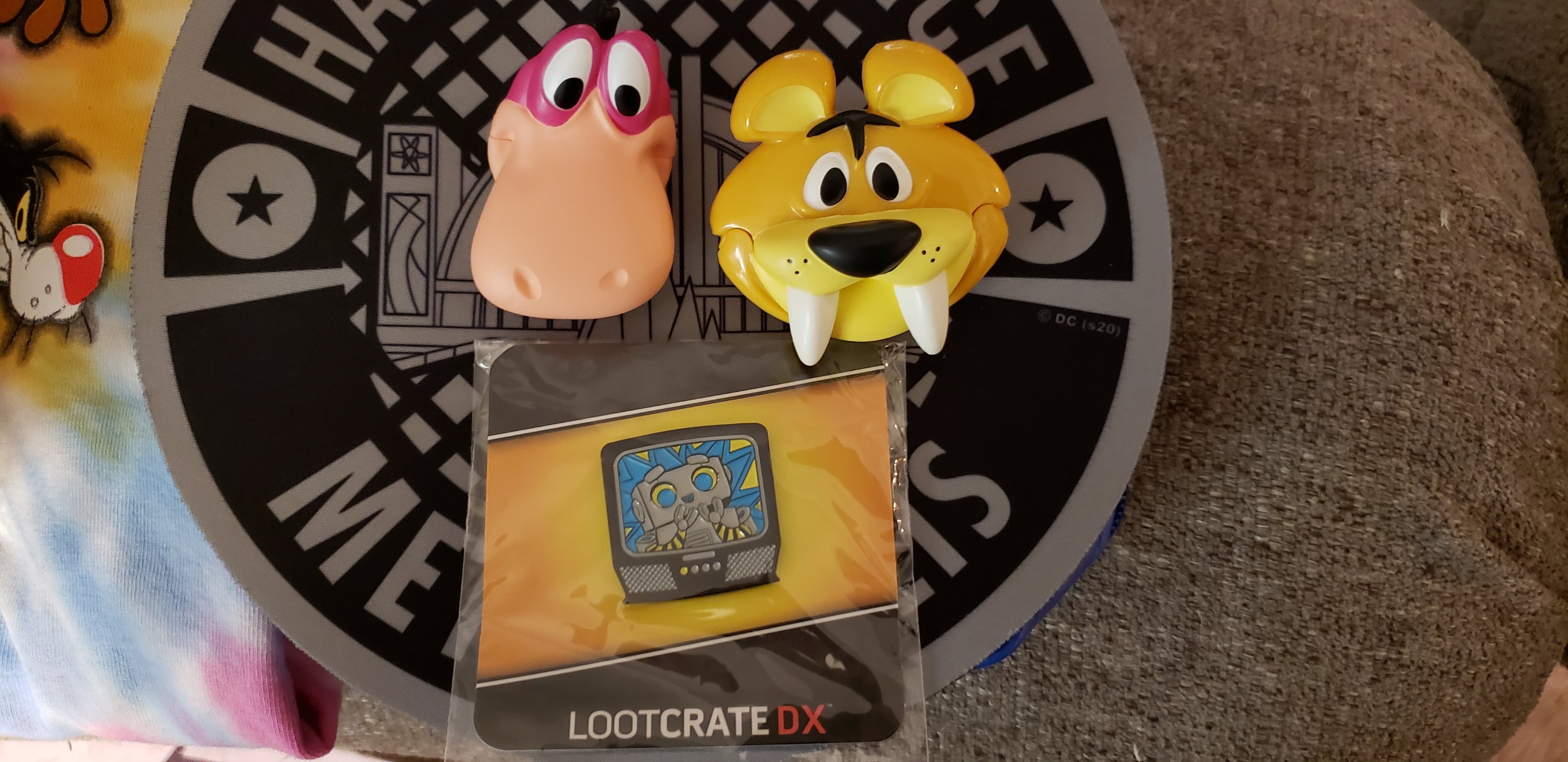 This Loot Crate wasn’t to bad. I think my favorite part was the Goodfeathers from the Animaniacs figure. The Pinky and the Brain bag was cool, but I gave it away. Now the Flintstones bag clips were awesome and became rather useful hahaha. Sadly the Looney Tunes shirt was tie dye…. I have an undying hatred for tie dye… So my girlfriend took that shirt. Did like the Hall of Justice mouse pad, just need to find a use for it or I might re-gift it to someone.