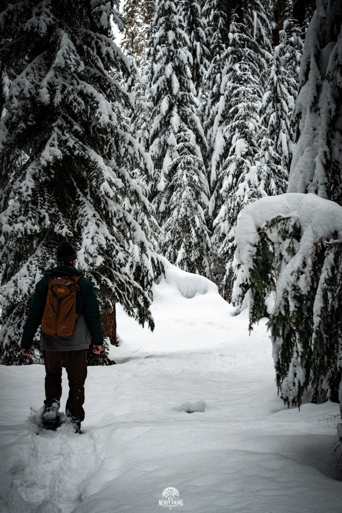 As soon as we arrived, we were greeted by towering trees draped in fresh snow, their branches heavy with winter’s embrace. The air was crisp, the kind that wakes you up instantly and reminds you that you’re alive. With our snowshoes strapped on and camera gear packed, we set off onto the quiet trails, ready to lose ourselves in nature.
