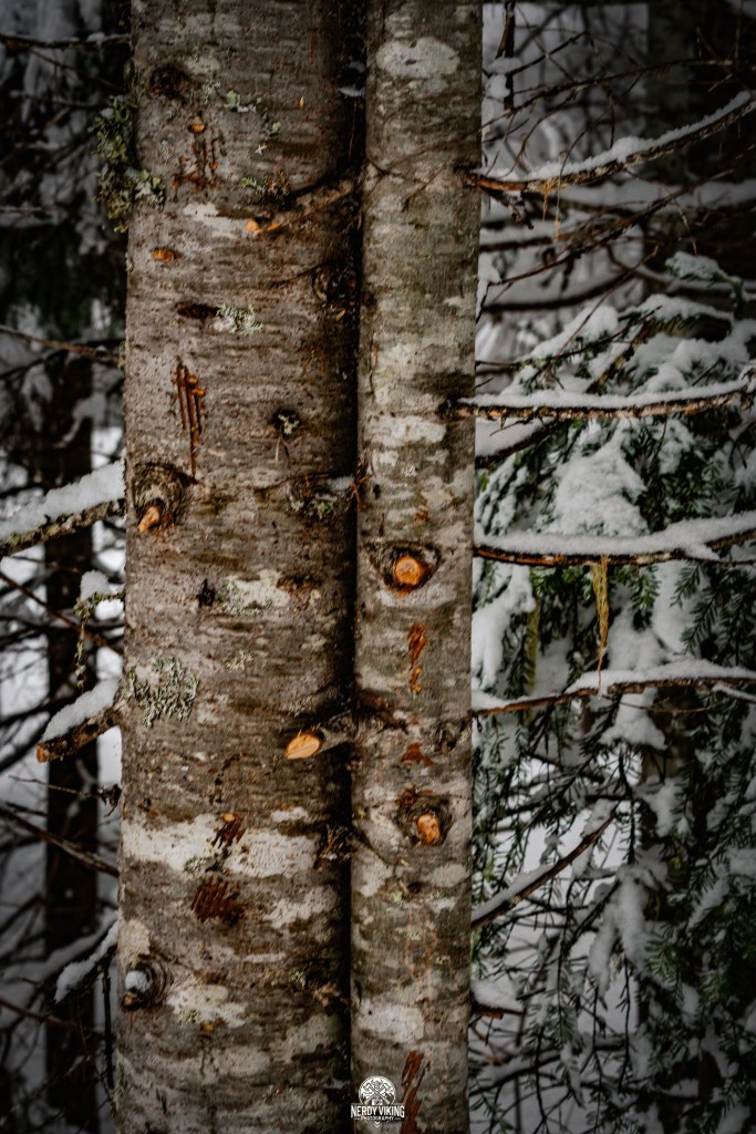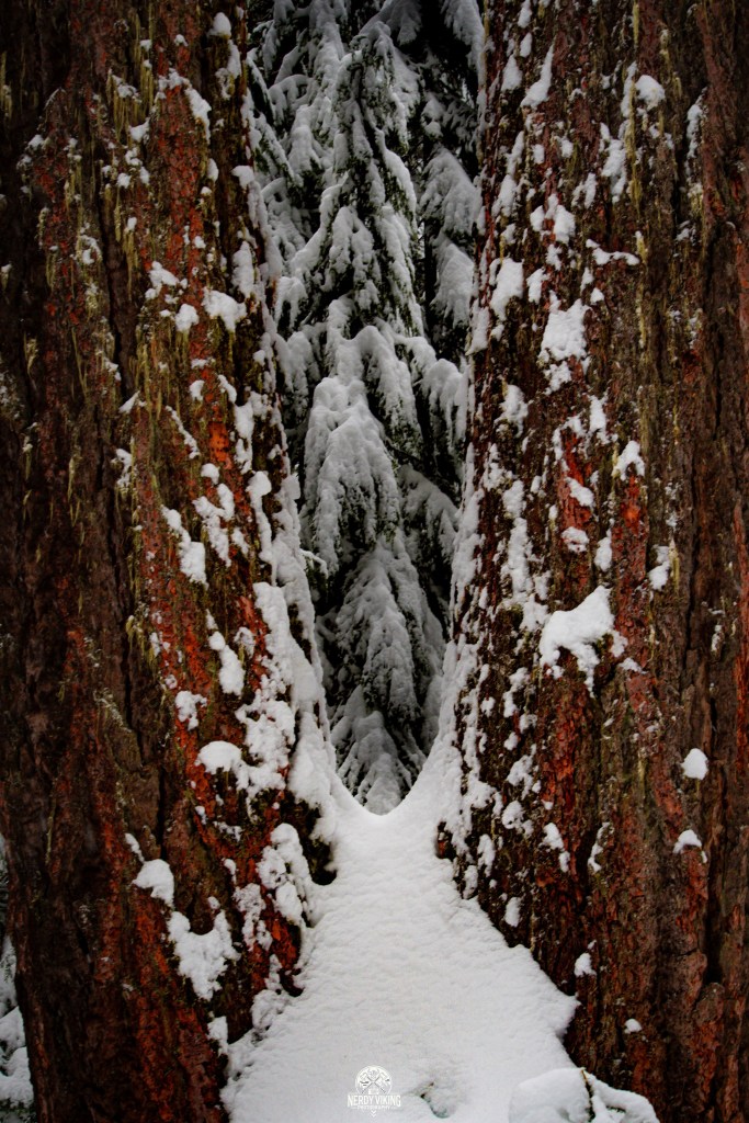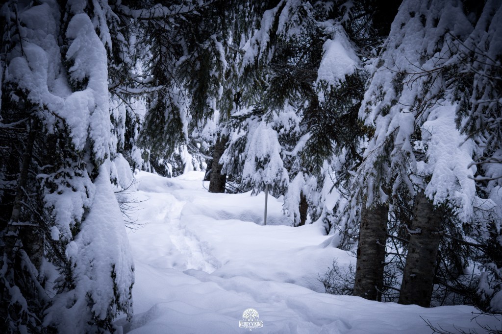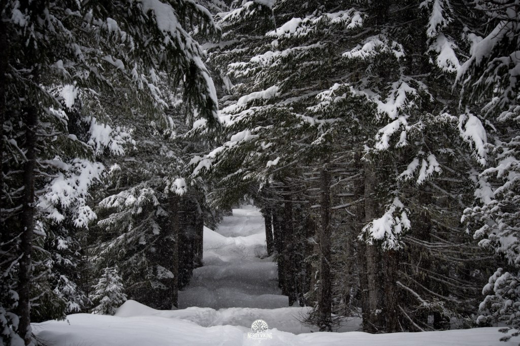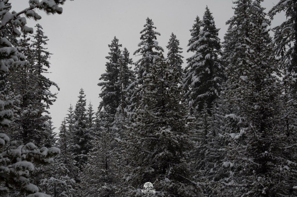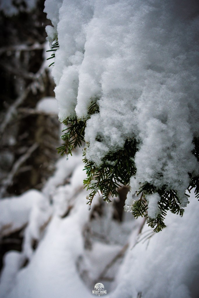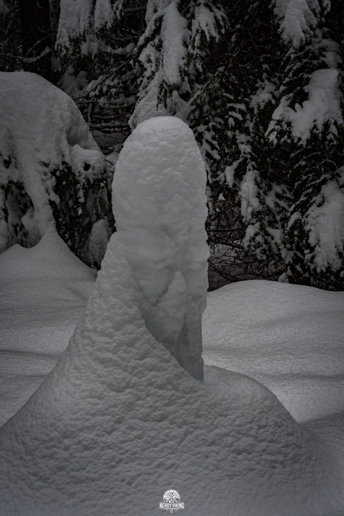 From the moment we hit the trail, we were surrounded by towering evergreens, their branches heavy with snow. The trail was serene and untouched, leading us into a landscape that felt straight out of a storybook. The deeper we trekked, the more magical it became, with snow-covered pines, hidden clearings, and frozen details waiting to be captured.
