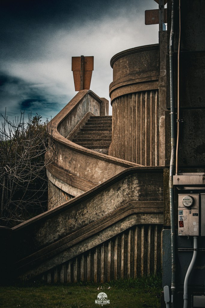 Near the waterfront, we found an old stairway structure, worn down by time and the elements. The peeling paint, rusted railings, and cracked concrete made for an incredible industrial scene. The eerie, almost dystopian vibe was exactly what I love capturing nature reclaiming what humans once built.