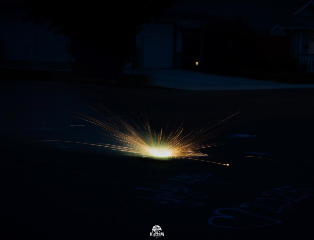 I set up the tripod. Mounted the Nikon. Dialed in a long exposure, chasing streaks of light and chaos. Click. Click. Click. It was working, those electric arteries of red, violet, and gold tore through the black like someone had ripped the universe open and let it bleed neon.