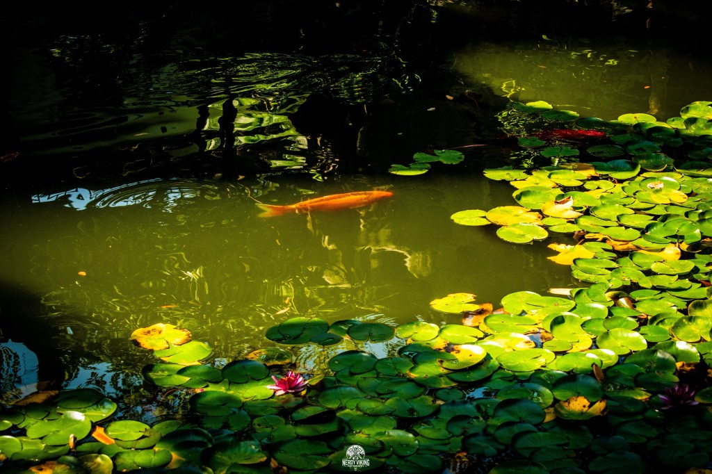The city’s madness stopped dead at the gate. Inside, koi glided like orange hallucinations through green water, lilies floating like opium petals on the surface. The architecture rose in elegant arcs, tiled roofs curling skyward like dragon spines, and lanterns swayed in the gentle wind. It was obscene in its beauty, because outside just twenty goddamn feet away, the world was burning.