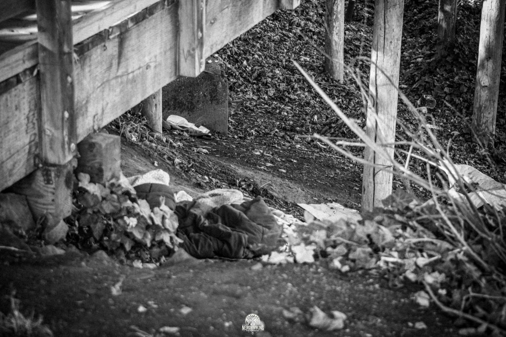 Albany isn’t Portland, thank the gods, old and new. But it still has shadows deep enough to swallow a person whole. The kind of place where you can stand in a perfectly maintained riverside park, the kind with shiny benches and nice landscaping, and then twenty feet to your left, there’s a man sleeping in a cocoon of blankets under the overpass like a forgotten ghost. A city divided by nothing more than a concrete seam… and a whole lot of willful blindness.