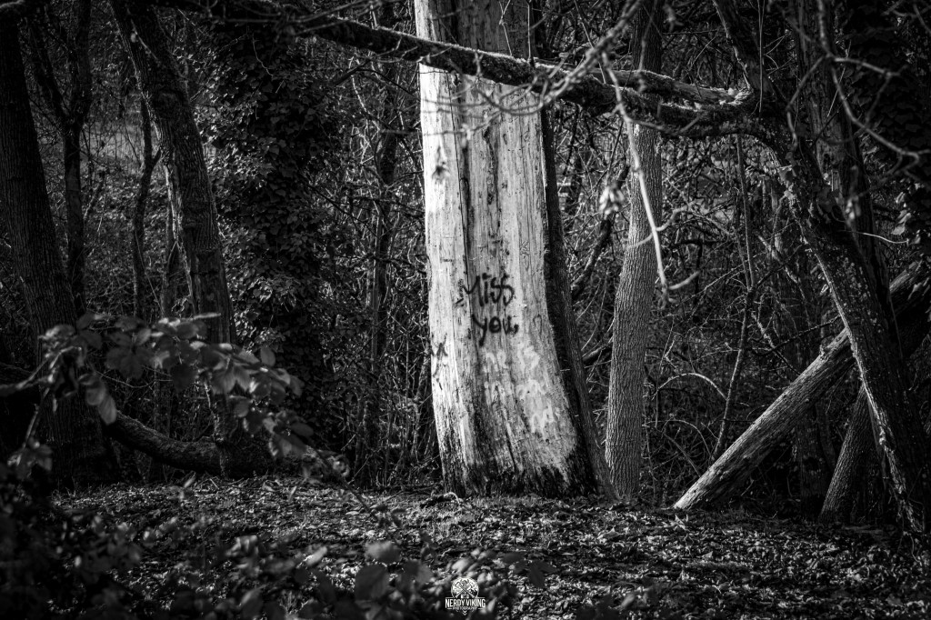 Everywhere I turned, there were messages etched in concrete, scratched into metal, sprayed onto tree trunks. “Miss you.” “777.” Half-finished prayers. Anger. Loss. Humanity leaking out between the cracks of a town trying very hard to look normal.