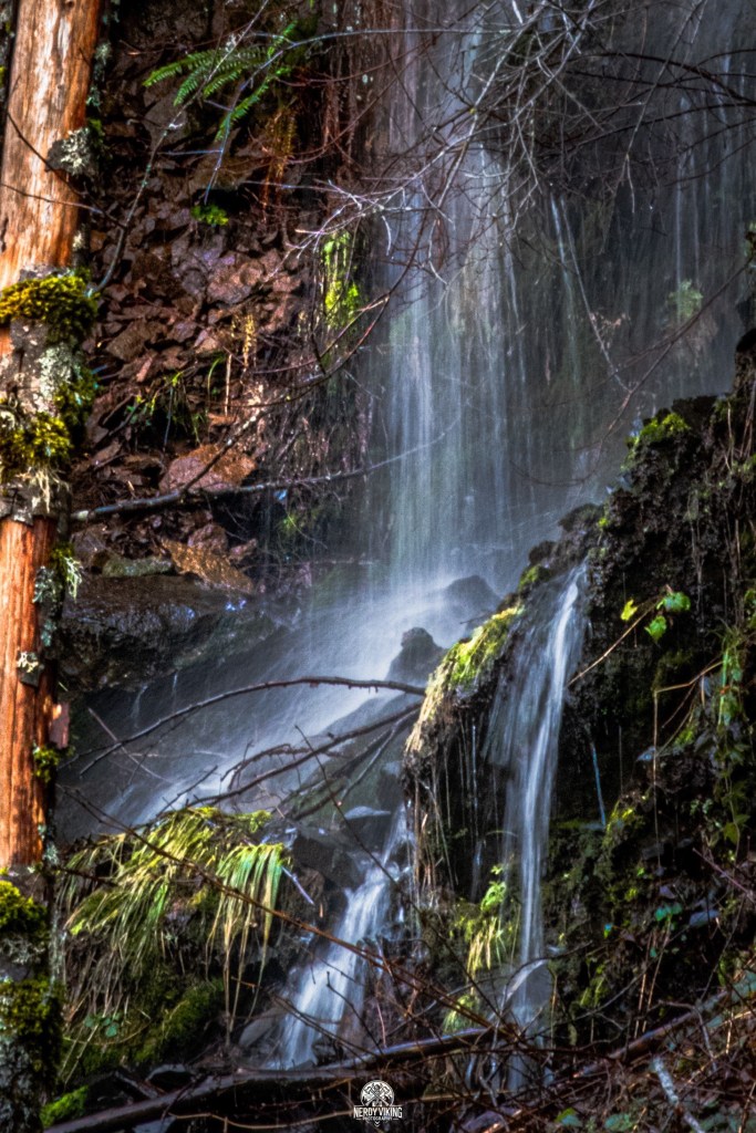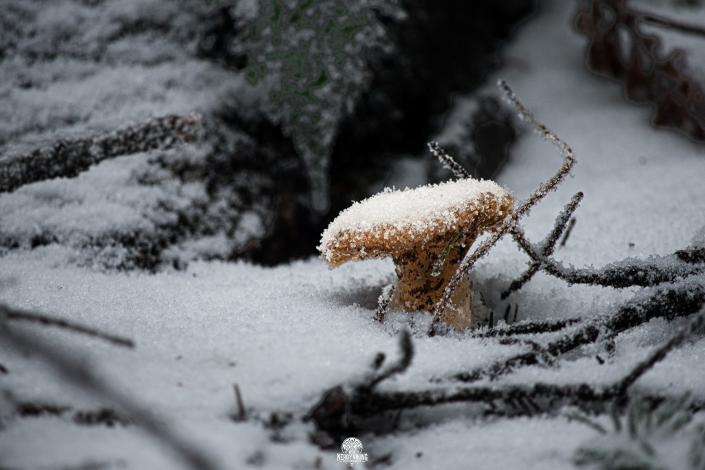 Somewhere along the way, the forest shifted. Trees heavy with frost stood like old sentinels, their branches bent under the weight of winter creeping in. The trails twisted and doubled back, leading us into pockets of silence so thick it felt invasive to speak. Mushrooms pushed up through soaked earth like small, defiant flags of life. Creeks ran fast and loud, swollen with weeks of rain, cutting through moss-covered stone like they were late for something important.