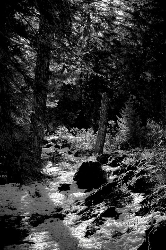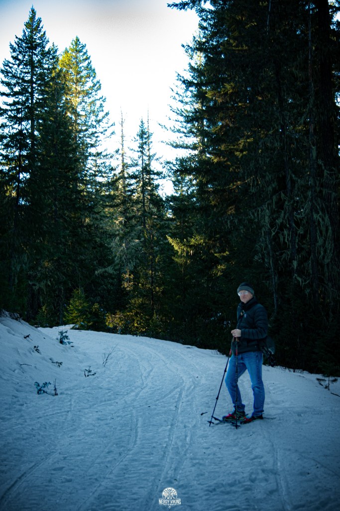 Little Nash Sno-Park was first. Snowshoes strapped on like medieval contraptions designed to humble modern arrogance. Every step was a negotiation with gravity, balance, and lungs that hadn’t quite forgiven me yet. The forest stood tall and indifferent, black trunks punching through white silence. No politics. No noise. No algorithms screaming for attention. Just breath, crunch, pause. Breath, crunch, pause. The kind of rhythm that clears static from your skull whether you ask it to or not.