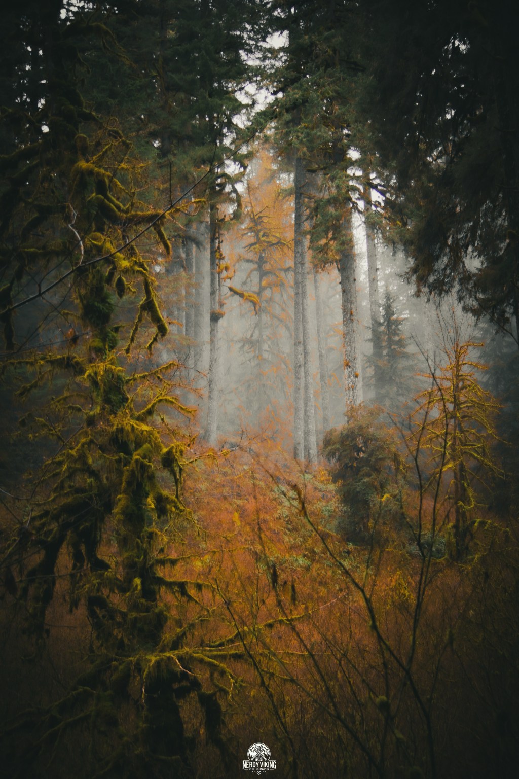 No waterfall thunder. No tourist commentary drifting through the trees. Just old growth standing at full height — trees that had been conducting their slow, dignified business for a century or more — watching two humans with expensive camera equipment wander through their territory like the confused and temporary creatures humans fundamentally are.